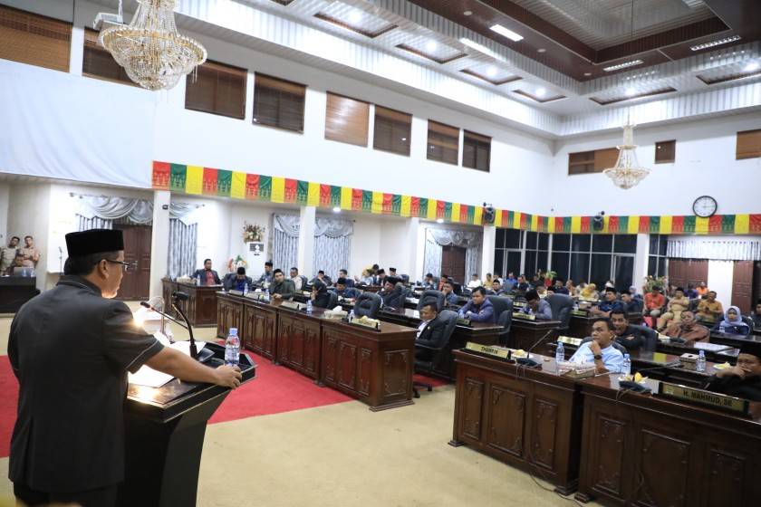 Rapat dipimpin Ketua DPRD Hj. Sumiartini bersama tiga Wakil Ketua, yakni Mohammad Aidi, S.H., Nono Patria Pratama, S.E., dan Porkot Lubis, S.H., M.H. Hadir dalam kesempatan tersebut Bupati Rokan Hulu Anton, S.T., M.M., Sekda Muhammad Zaki, unsur Forkopimda, para kepala Organisasi Perangkat Daerah (OPD), serta 41 anggota dewan.