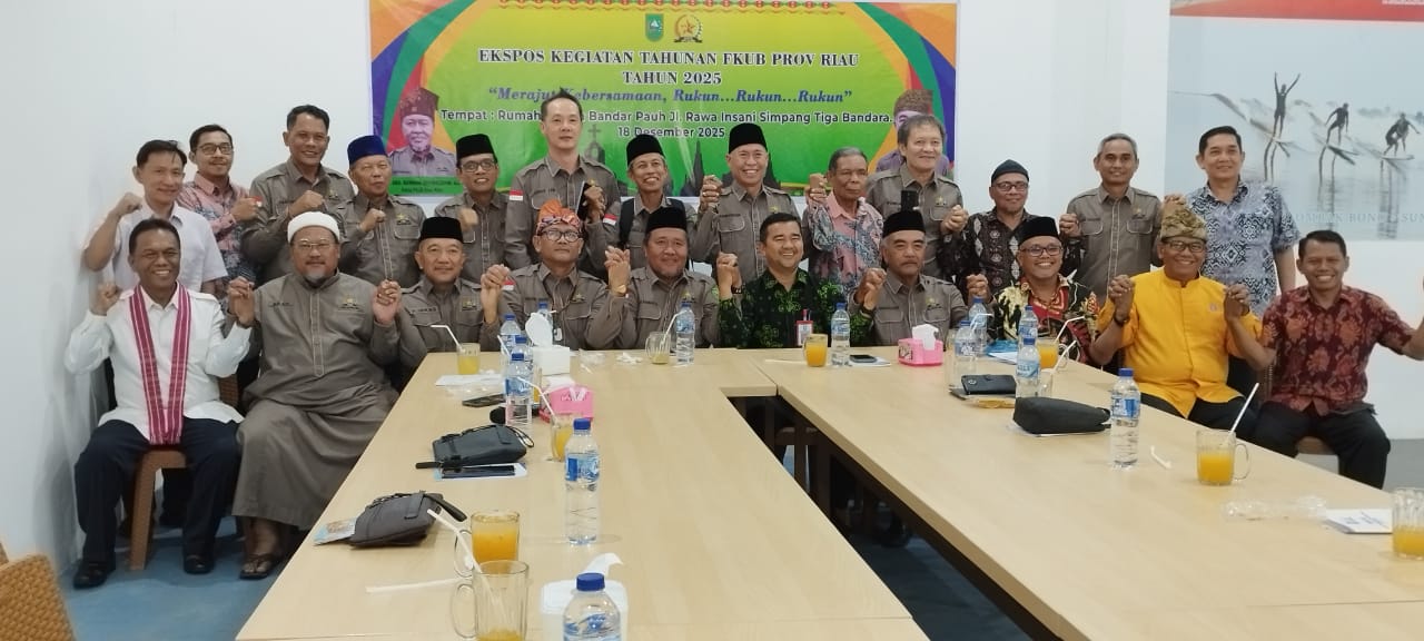 Saguriau .COM , PEKANBARU – Forum Kerukunan Umat Beragama (FKUB) Provinsi Riau menggelar ekspos kegiatan tahun 2025 di Rumah Makan Bandar Pauh, Pekanbaru, Kamis (18/12/2025).